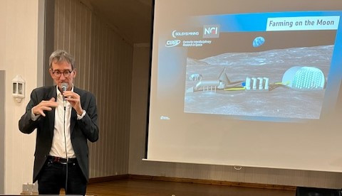Presidenten fra RRK ønsket velkommen og ga ordet til foredragsholderen. Han er fagsjef for det som heter «Bemannet romfart og utforskning» i «Direktoratet for Romvirksomhet» som er underlagt «Næring- og fiskeridirektoratet». Tidligere het det Norsk Romsenter. De holder til på Skøyen og er ca. 50 ansatte. Deres oppgave er å følge opp den offentlige romsatsingen og utvikling av norsk romnæring. De har et budsjett på 1.614 millioner hvor av mye av dette går til programmer i regi av ESA og EU. Norge har vært medlem av den europeiske romorganisasjonen ESA siden 1987.